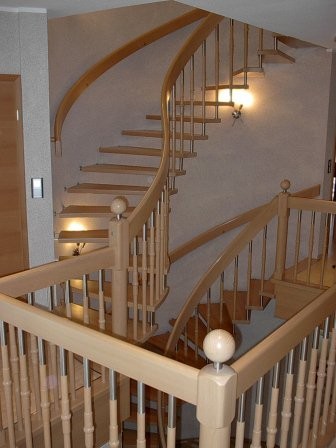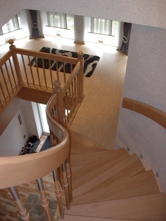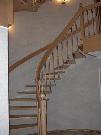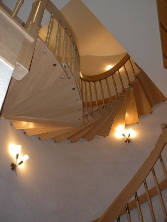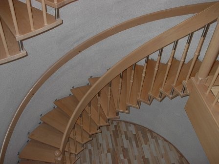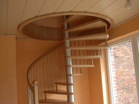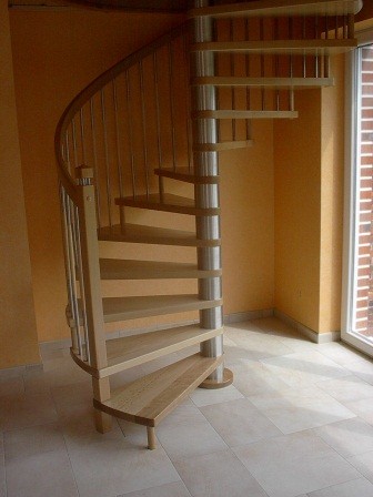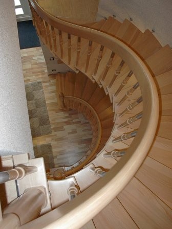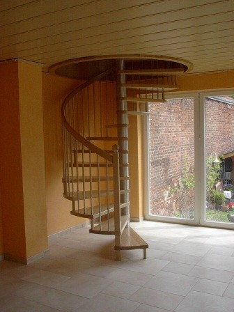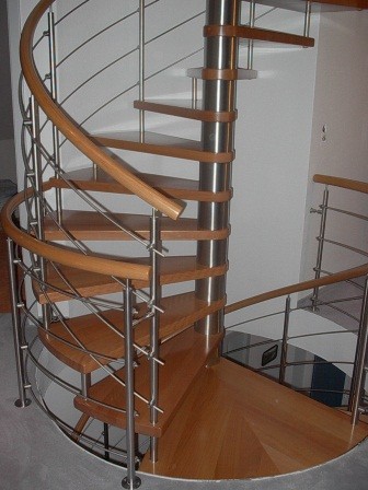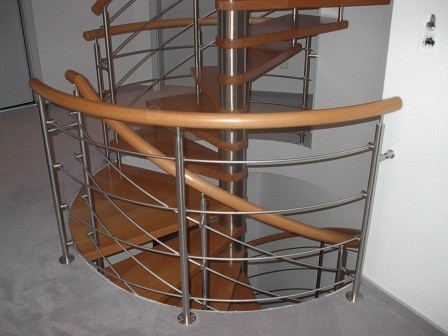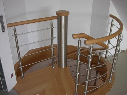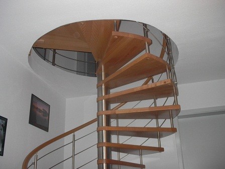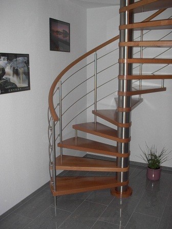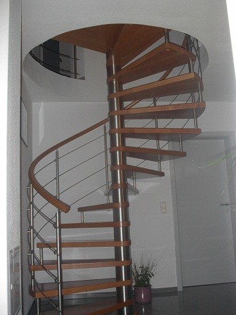 Der für eine Spindeltreppe typische elegante Schwung macht diese Treppe